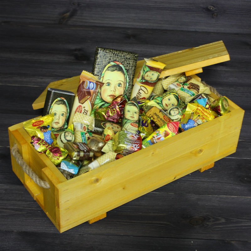 Сладкий новогодний подарок в виде шкатулки от фабрики Красный Октябрь в Долгопрудном