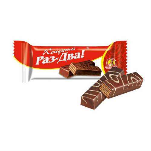 Конфеты вафельные Раз-Два! 30 грамм производства фабрики Славянка можно купить оптом с доставкой по Москве, Подмосковью и ЦФО. Низкая цена обусловлена отсутствием посредников при наличии прямого договора с производителем.  Все актуальные сертификаты в наличии. Минимальный заказ: 1 коробка
