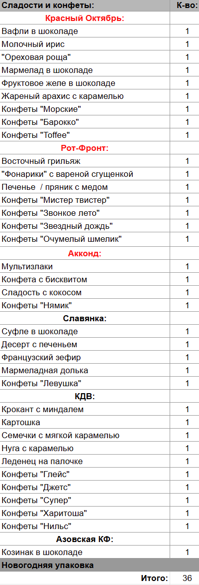 Кол-во сладостей: 36 шт.