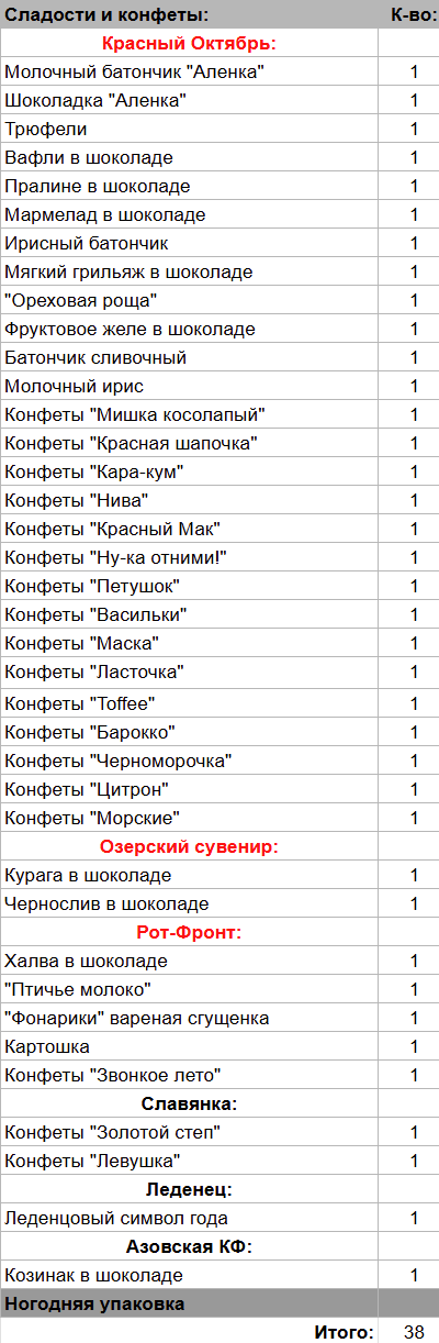 Кол-во сладостей: 38 шт.
