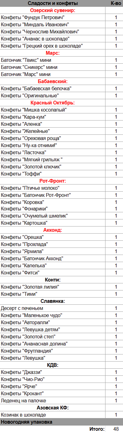 Интернет-магазин сладких новогодних подарков работает от производителя напрямую, за счет чего мы убираем посредников и снижаем цены на детские новогодние подарки. Кроме того, наша логистика позволяет доставить заказ практически в любой город за наш счет. Все цены на сладкие подарки актуальны