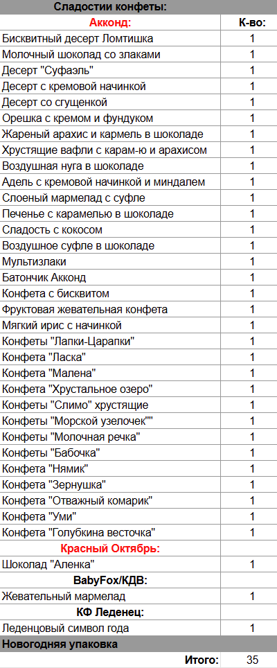 Кол-во сладостей: 35 шт.